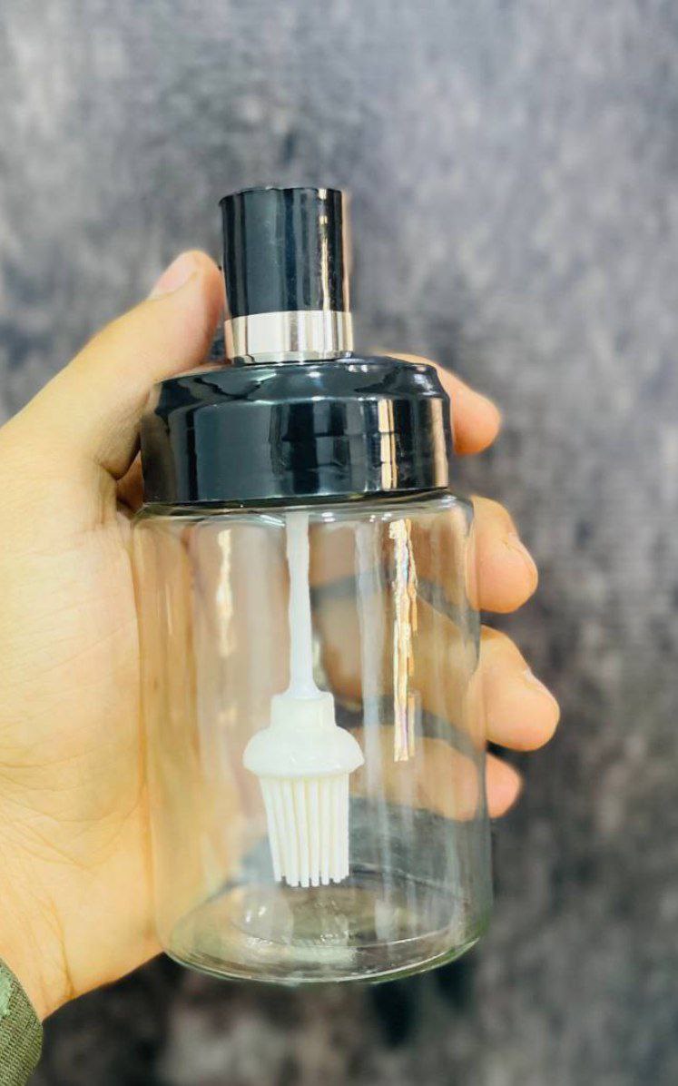 برطمان زجاج بالفرشاه او المعلقة لتجهيز الصوصات والتوابل وجعلها جاهزة الاستخدام فى اى وقت