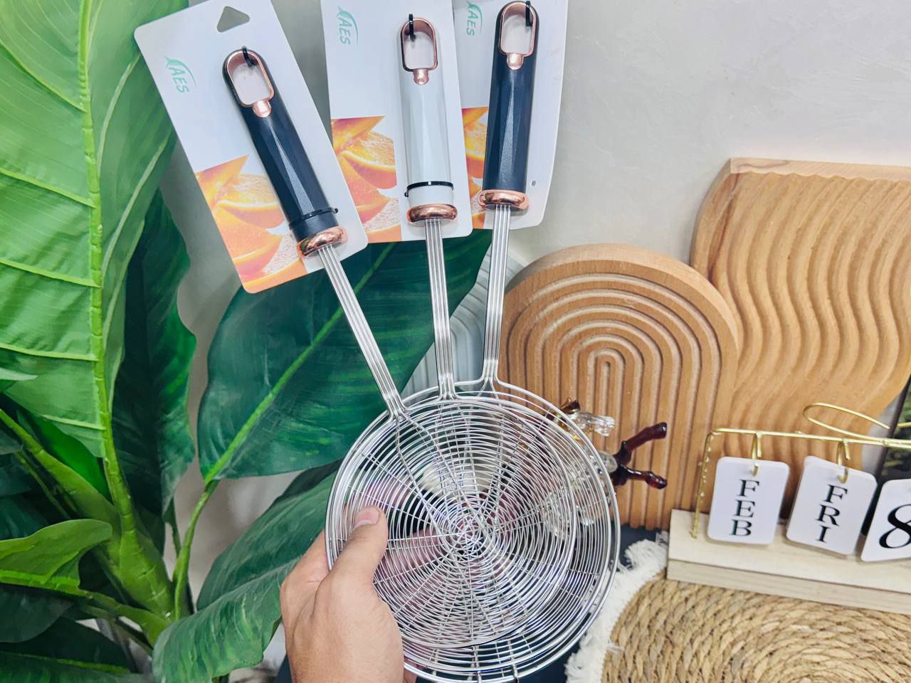 شيالة طعمية وبطاطس أستانلس يد بلاستيك مقاسات مختلفة
