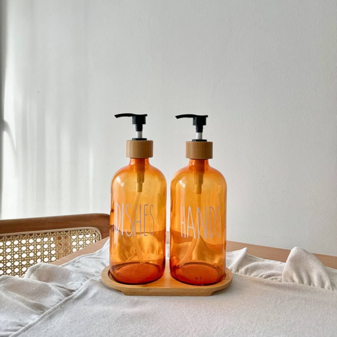 طقم شاور دسبنسر مكون من قطعتين بزجاج عسلي أنيق، مزود بحامل خشبي متين يضيف لمسة طبيعية وعصرية إلى حمامك. التصميم العملي يسهّل توزيع الصابون أو الشامبو، مع الحفاظ على ترتيب وتنظيم المساحة. مثالي لمن يبحث عن دمج الجمال والوظيفة في أدوات العناية الشخصية.
