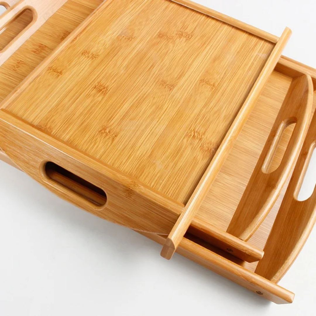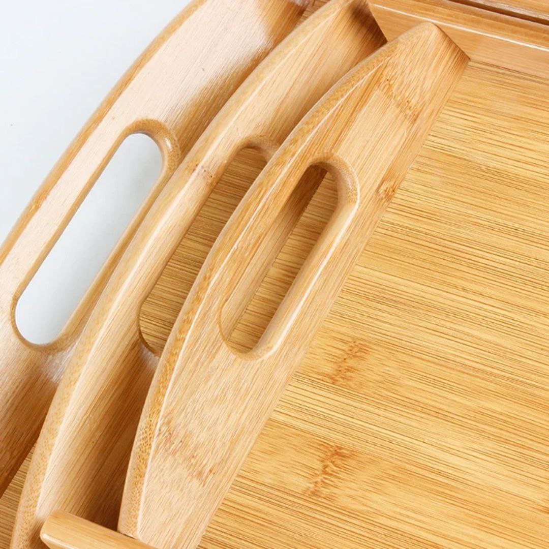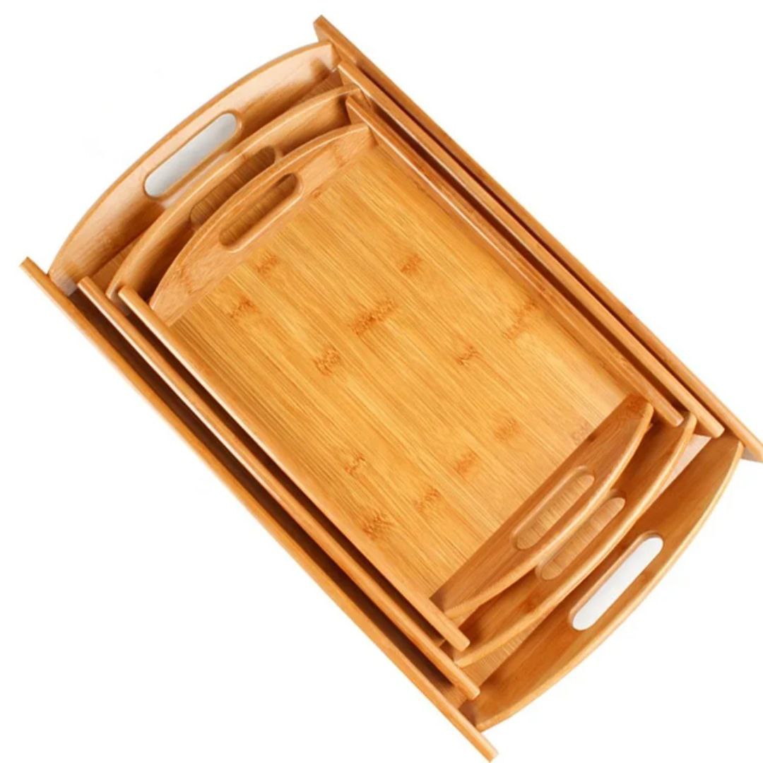 طقم صواني تقديم خشبي مصنوع من خشب البامبو الطبيعي
