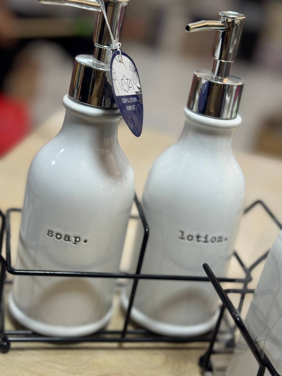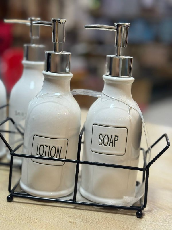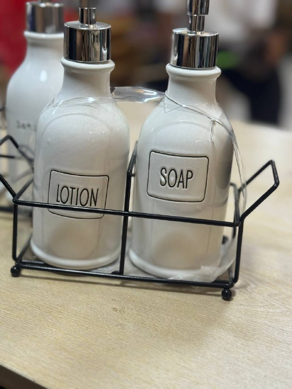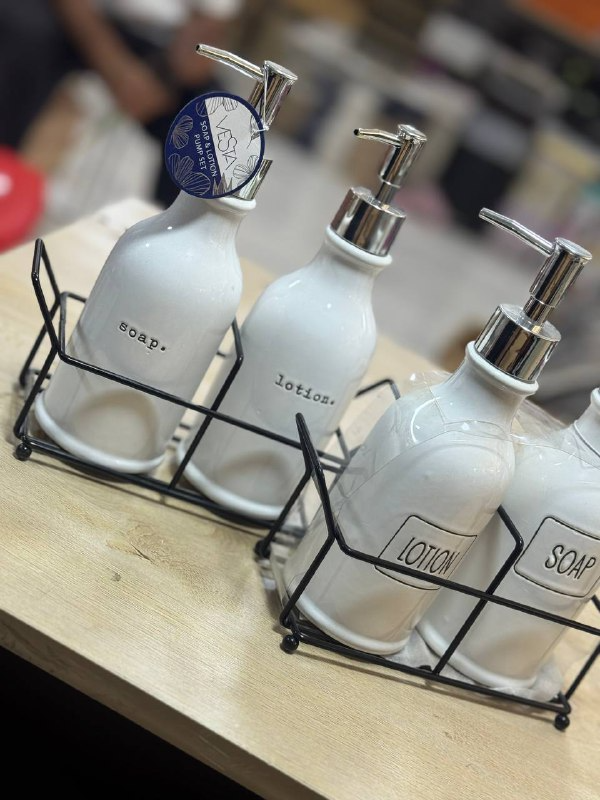 طقم موزع صابون سائل وغسول البورسلين مع حامل معدني،أبيض