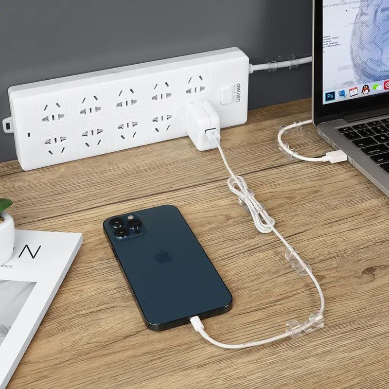 مشابك كابلات ذاتية اللصق مصممة لتنظيم الكابلات في المكتب، السيارة، والمنزل بكفاءة عالية. تأتي المجموعة بـ20 قطعة توفر حلاً عمليًا لإدارة الأسلاك